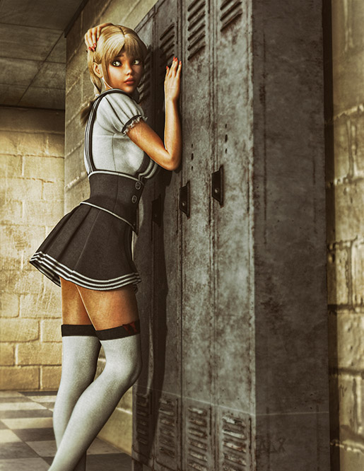 Our long-suffering protagonist has left her Sanrio katana in the locker and then forgot her combination. Now she can't help all her friends slay the oni who attack her school... She looks less wistful here, all due to a small change in lighting...