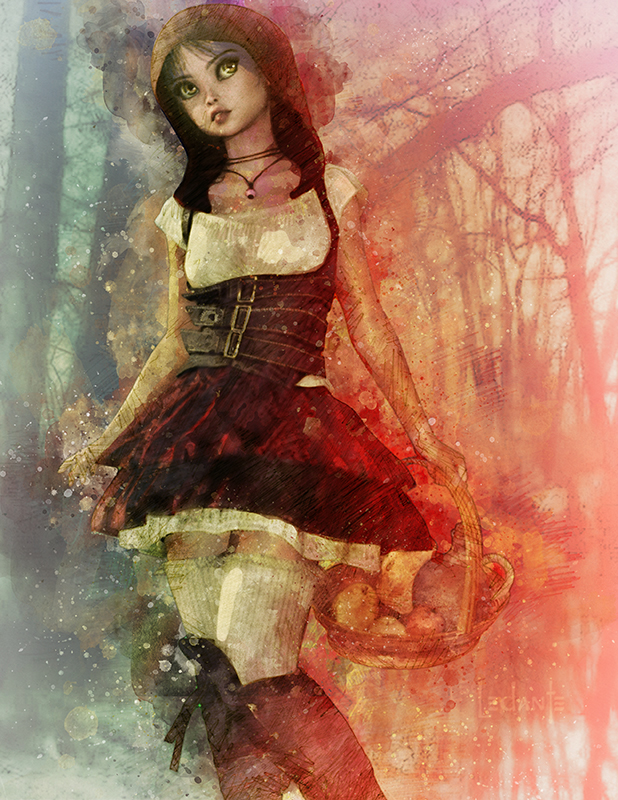 A tisket, a tasket, a loosely rendered basket... is the song she must be singing to herself as she wanders through the painterly forest