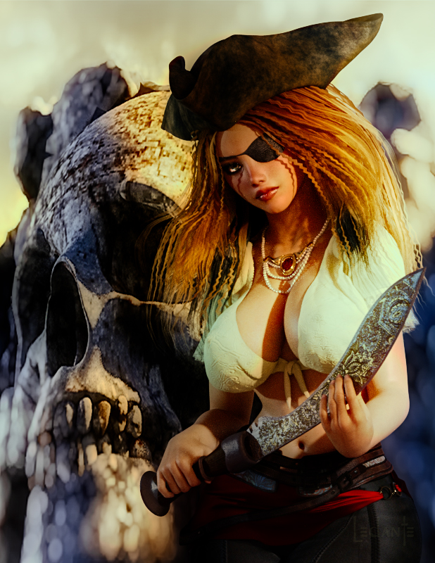 Although she has but one eye, she's seen more things than ye landlubbers would ever believe. Her kukri shows that she's sailed the seven seas...