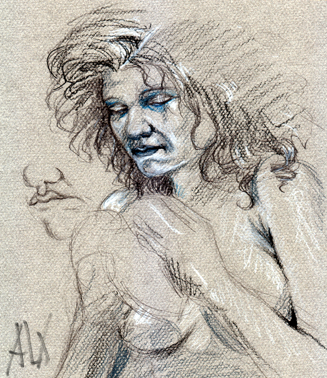 Graphite and color pencil on Canson paper Original size 9*13 © 1998 Alex Ledante |